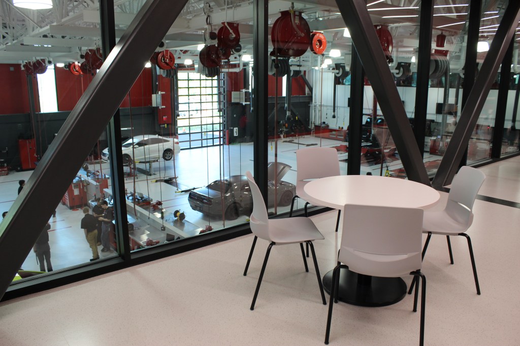 The TEC is rampant with viewing areas for the work being done in the various labs and garages. Students do not have to be a part of the specific automotive or welding programs in order to come to the building and study or watch the work being done.